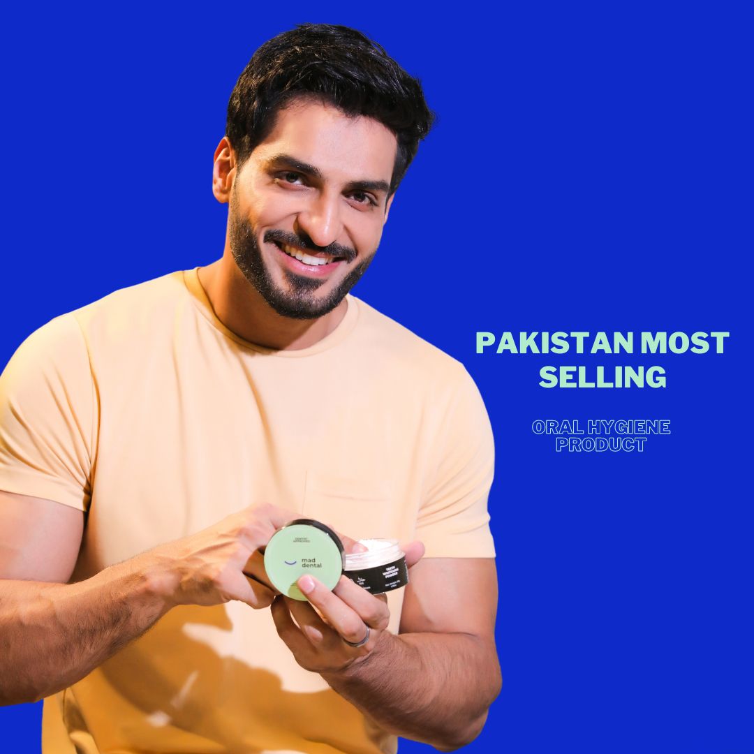 Omer Shahzad is a Pakistani model, actor and singer who started his career in 2011, and has since established himself as one of the country's top models and actors Uses Mad Teeth Whitening Powder.